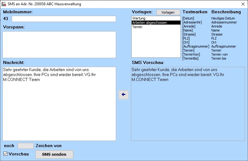 Informieren Sie Kunden z. B. über Termine oder eingetroffene Artikelbestellungen und sparen Sie sich viele „leere“ Telefonate. Senden Sie auch SMS an Mitarbeiter oder Lieferanten einfach und bequem über die Tastatureingabe.